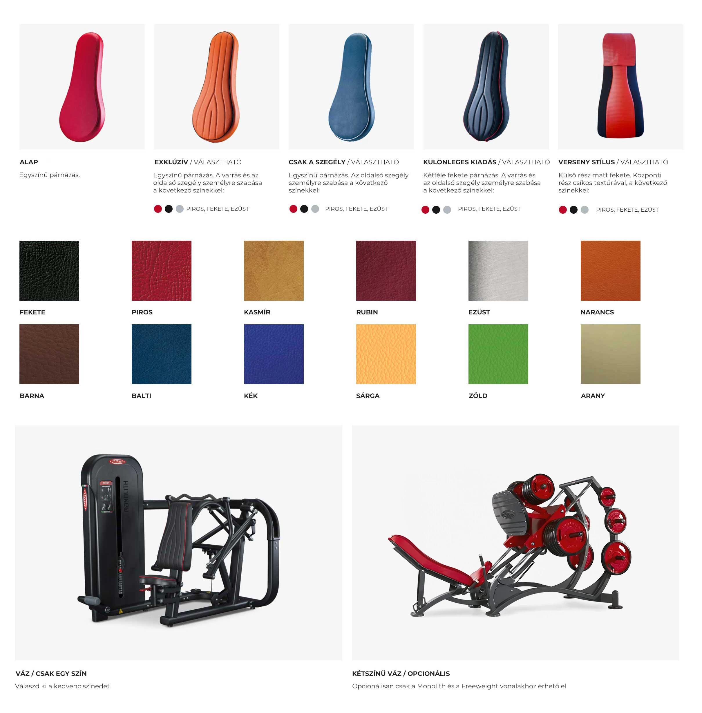 Panatta® oferă posibilitatea de a personaliza echipamentul. Oferă peste 2.000 de combinații de culori diferite (cadru/tapițerie), dintre care unele pot fi prevăzute cu un logo unic.